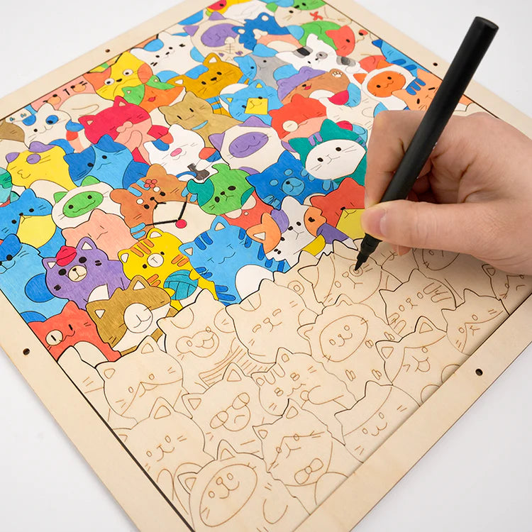 Erlebe die perfekte Verbindung von Kunst und Entspannung mit unserem Holz-Malpuzzle. Jedes Holzteil ist präzise lasergeschnitten und wunderschön gefertigt, wodurch ein besonders angenehmes haptisches Erlebnis beim Bemalen und Zusammensetzen entsteht. Ob zum Abschalten nach einem langen Tag oder als achtsame Freizeitbeschäftigung – dieses Puzzle bringt friedliche Kreativität direkt in deine Hände.