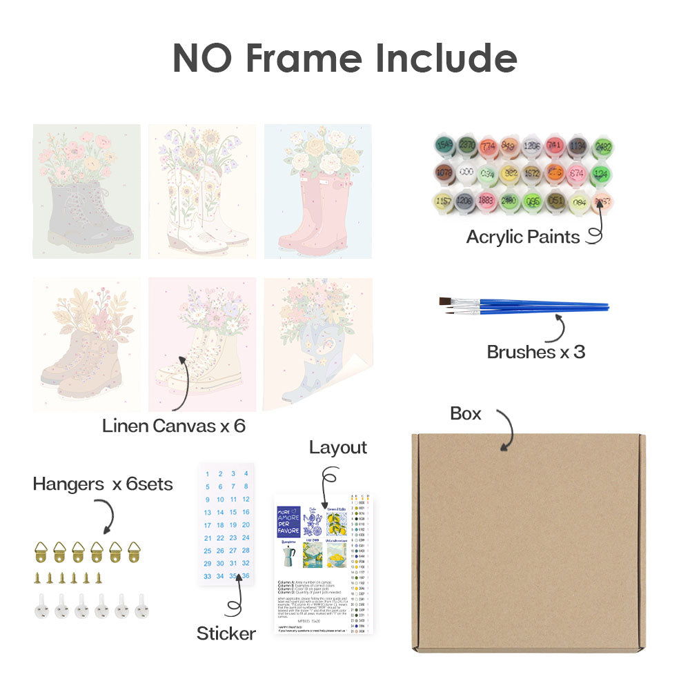 Enthüllen Sie alles Wesentliche ordentlich verpackt in unserem Malen nach Zahlen-Kit. Wenn jede Komponente beschriftet und einsatzbereit ist, können Sie sich ausschließlich auf Ihre künstlerische Reise konzentrieren. Von den leuchtenden Farben bis hin zu den Präzisionspinseln haben wir dafür gesorgt, dass nichts zwischen Ihnen und Ihrer Leinwand steht. Dieses Kit ist sowohl für Anfänger als auch für erfahrene Künstler geeignet und bietet ein reines, ununterbrochenes Malerlebnis.