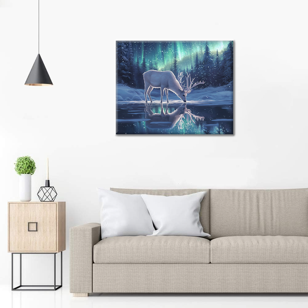 Hirsch im Nordlicht – Malen nach Zahlen